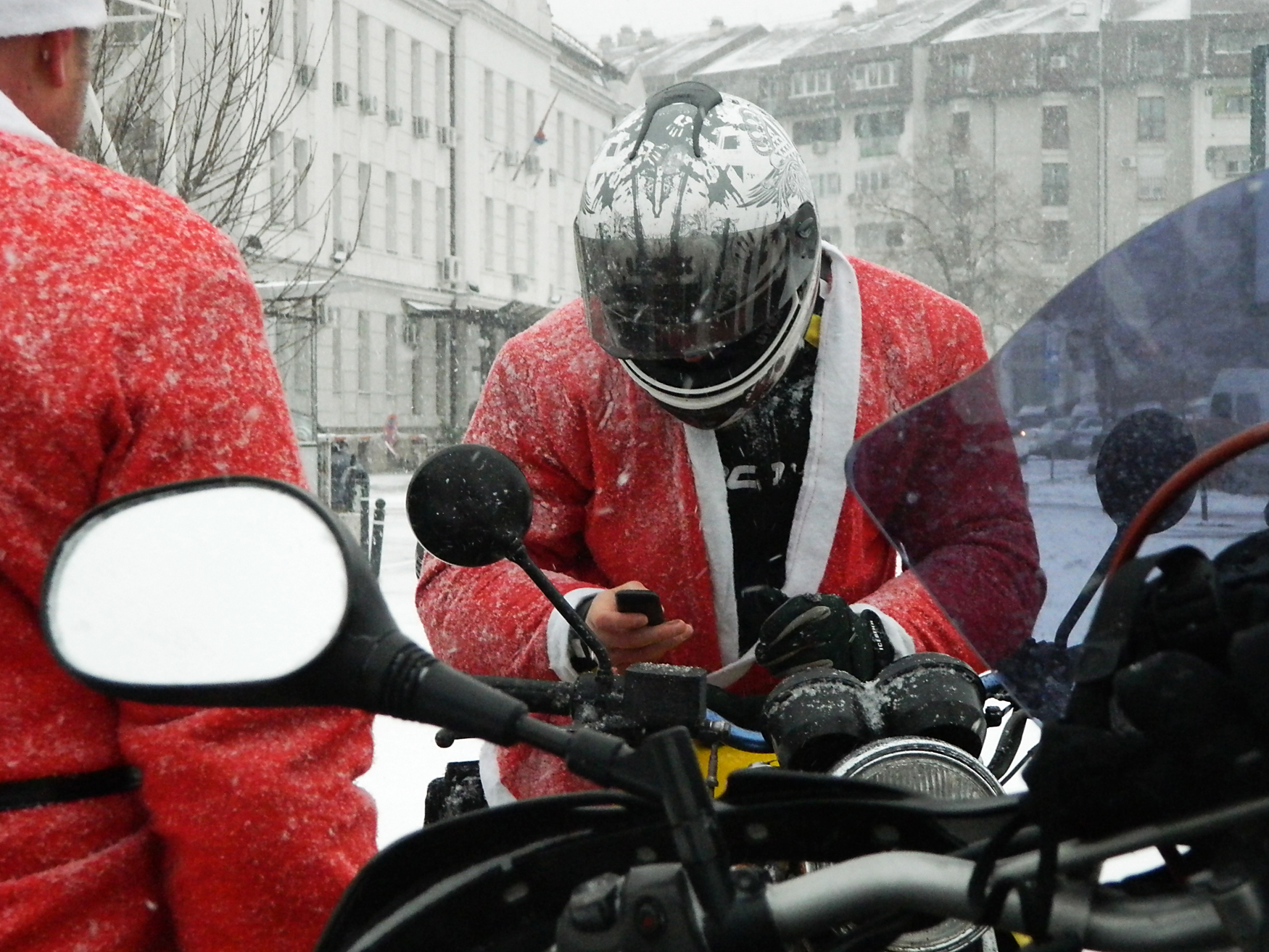 Због снега који је падао од раног јутра, само су ретки дошли на моторима, али то није зауставило ту традиционалну акцију.