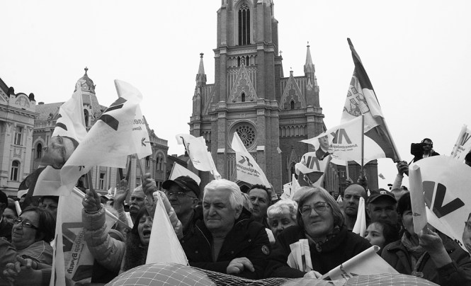 Предизборни митинг Александра Вучића, актуелног премијера и кандидата Српске напредне странке за председника Србије, одржан је прошле суботе у Новом Саду. Ова фото прича потрудиће се да дочара детаље тадашње атмосфере са Трга слободе.