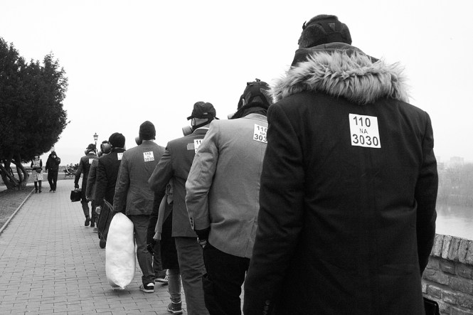 Урбани герила ратници из подземља урадили су јуче нешто (не)нормално и до сада невиђено! Обукли су се у лепа одела, ставили гас маске, продефиловали горњим делом Тврђаве Петроварадин, спустили се кроз водовод до обале Дунава и из провијантског дела тврђаве изнели две и по тоне годинама нагомилаваног смећа. Сво време на леђима су носили натпис „110 на 3030“, како би позвали суграђане да пошаљу СМС поруку ради сакупљања новца за операцију Југослава Беркловића, суграђана из Сремске Каменице, за операцију у Кијеву.
