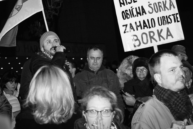 Бранислав Трифуновић говори учесницима протеста