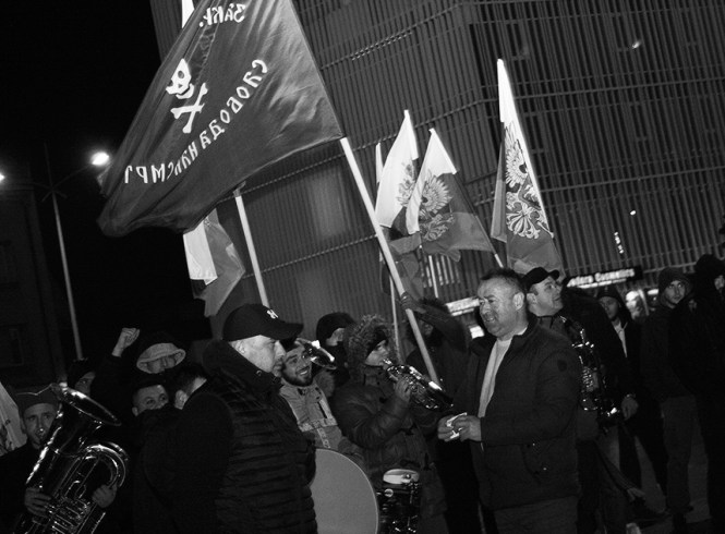 Група људи која је покушала да омета протесте испред Српског народног позоришта