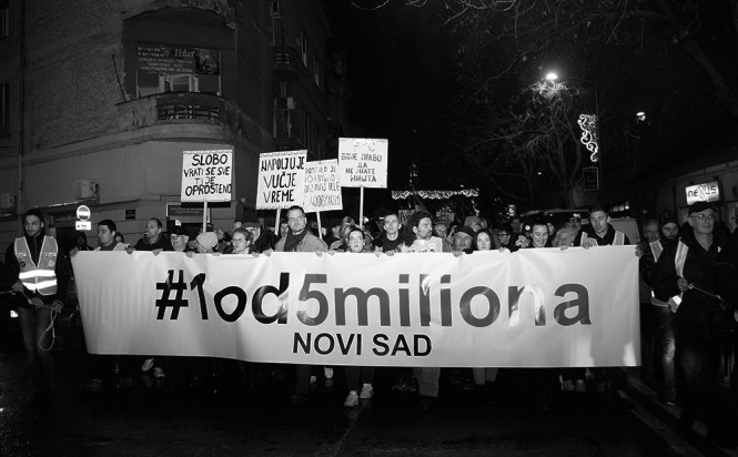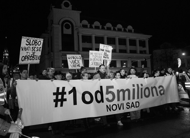 Пар хиљада Новосађана протестовало је вечерас на улицама Новог Сада под паролом „Један од пет милиона – стоп крвавим кошуљама“. Разлог за протест је велико незадовољство тренутним друштвеним приликама, оличеним кроз власт Српске напредне странке и Александра Вучића.