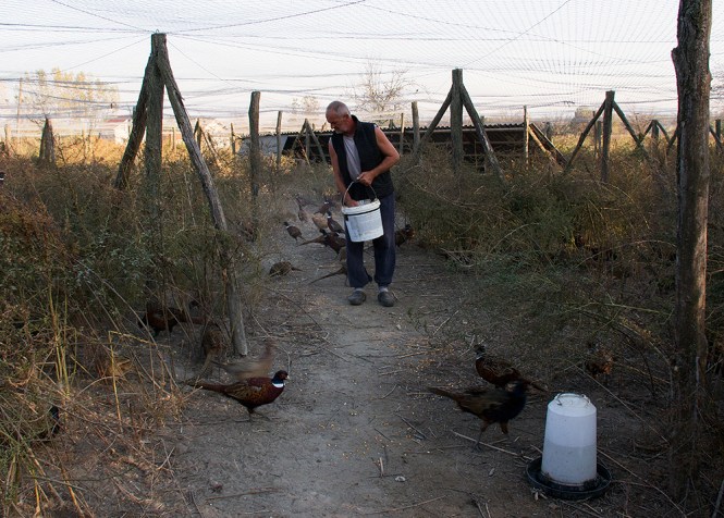 -Фазани се овде не размножавају, јер се пуштају пре сезоне парења. Пре доласка младих фазанчића, коси се трава и фазанерија се дезинфикује живим кречом. Лисице из атара и пси луталице не могу да дођу до птица, јер је жица укопана пола метра у земљу – прича Сима Драгојлов (на слици испод), бегечки ловац, који сваки дан долази да храни фазане кукурузима и концентратом.
