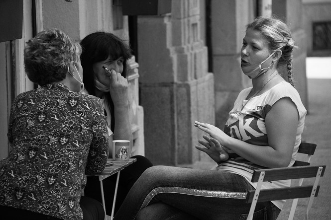 Оно што је сигурно, јесте то, да ћемо тај призор гледати још неко време, јер је он увелико постао део наших живота. Конобари у неким новосадским кафићима скоро па шаљивим тоном кажу, да гости за столом често заборављају маске, као што су пре заборављали мобилне телефоне.