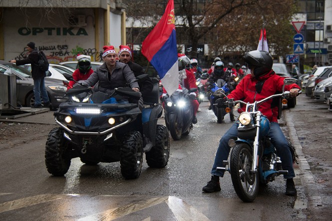 -Дечијој болници смо поклонили помоћне кревете и шест инхалатора за децу, јер су нам рекли да им је то потребно. Ово радимо већ дуго и сви мотораши се одазову. Све смо сами финансирали, без помоћи града и државе. У претходних двдесет година спроводили смо ову акцију и по снегу, јер деци је лепо када виде Деда Мразове (и то на моторима). Доста градова по Србији сада спровди ову акцију, а Нови Сад је пре двадесет година био први – рекао је Зоран Матић, председник мото дружине “Апостоли”, која је главни организатор акције, иако су у њој учествовали и мотораши који нису чланови тог удружења. Позиву се одазвало око сто бајкера.
