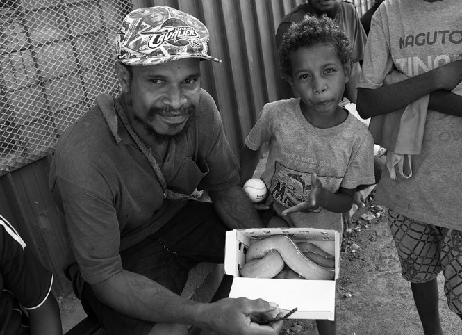 Просте монтажне зграде, прашњаве улице којима људи ходају боси заједно са псима. Као да се никад ништа ново не дешава под тим тропским сунцем, које неумољиво пржи камен. Али најупечатљивије обележје Алотауа, луке на југоистоку Папуе Нове Гвинеје у југозападном Пацифику, јесу лица људи – мушкараца, жена и деце. Иако делују једноставно и гостољубиво, живе тешко на много начина. И обрнуто – иако живе тешко на много начина, делују једноставно и гостољубиво.